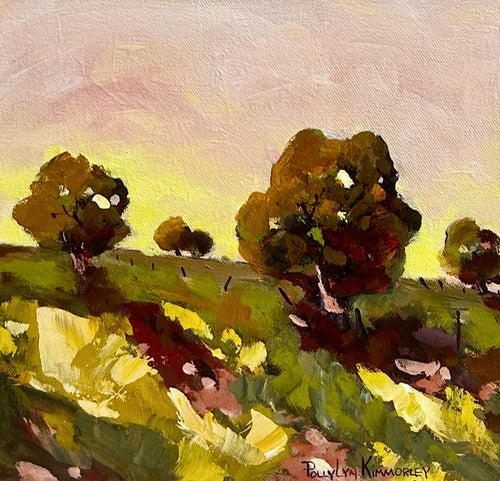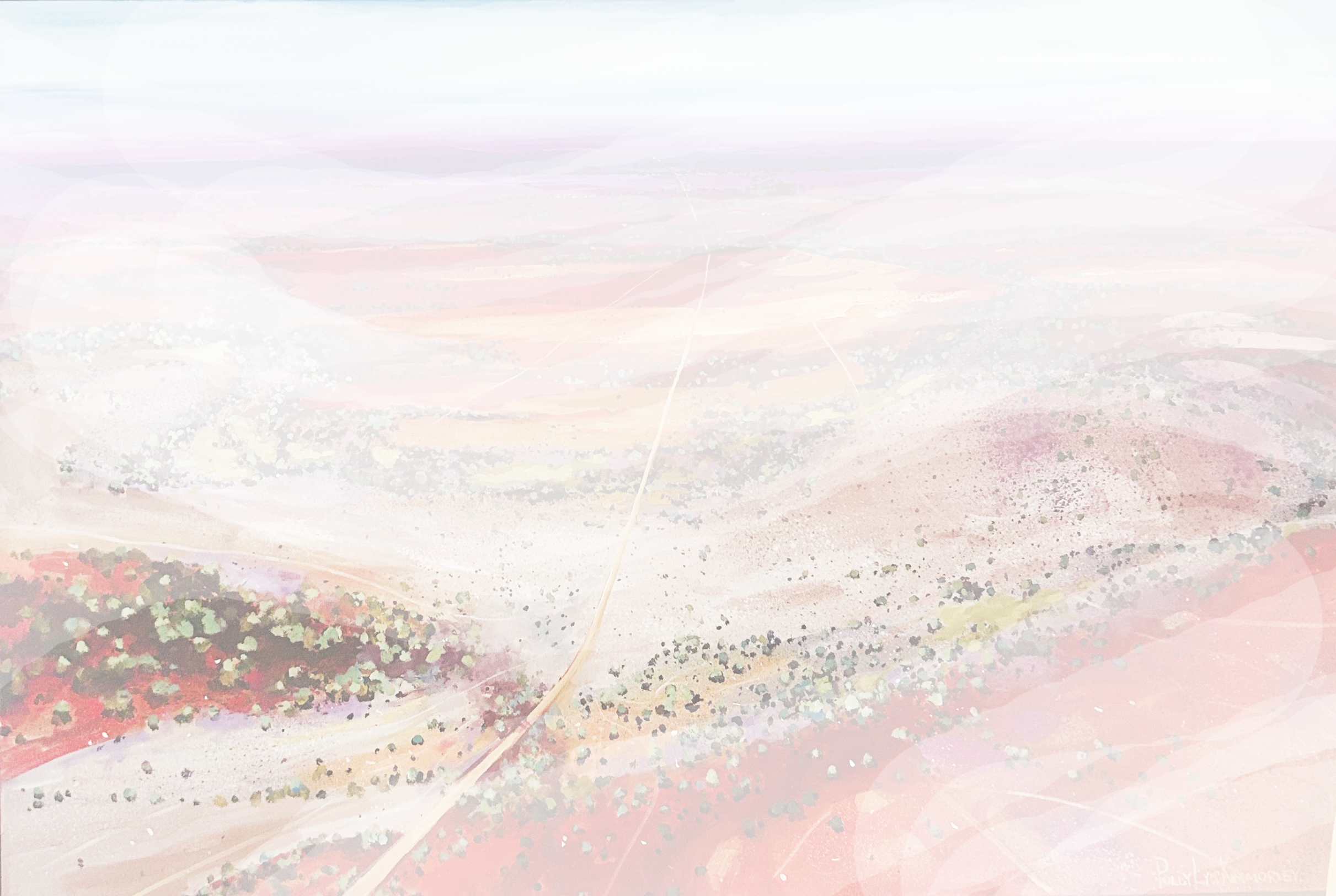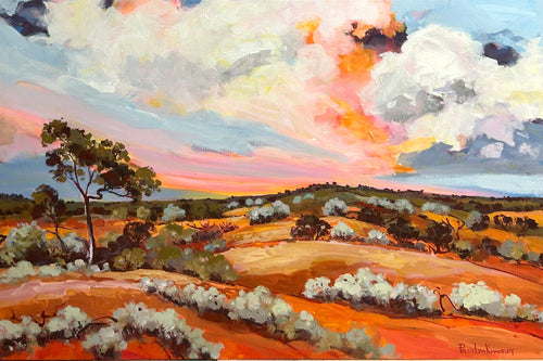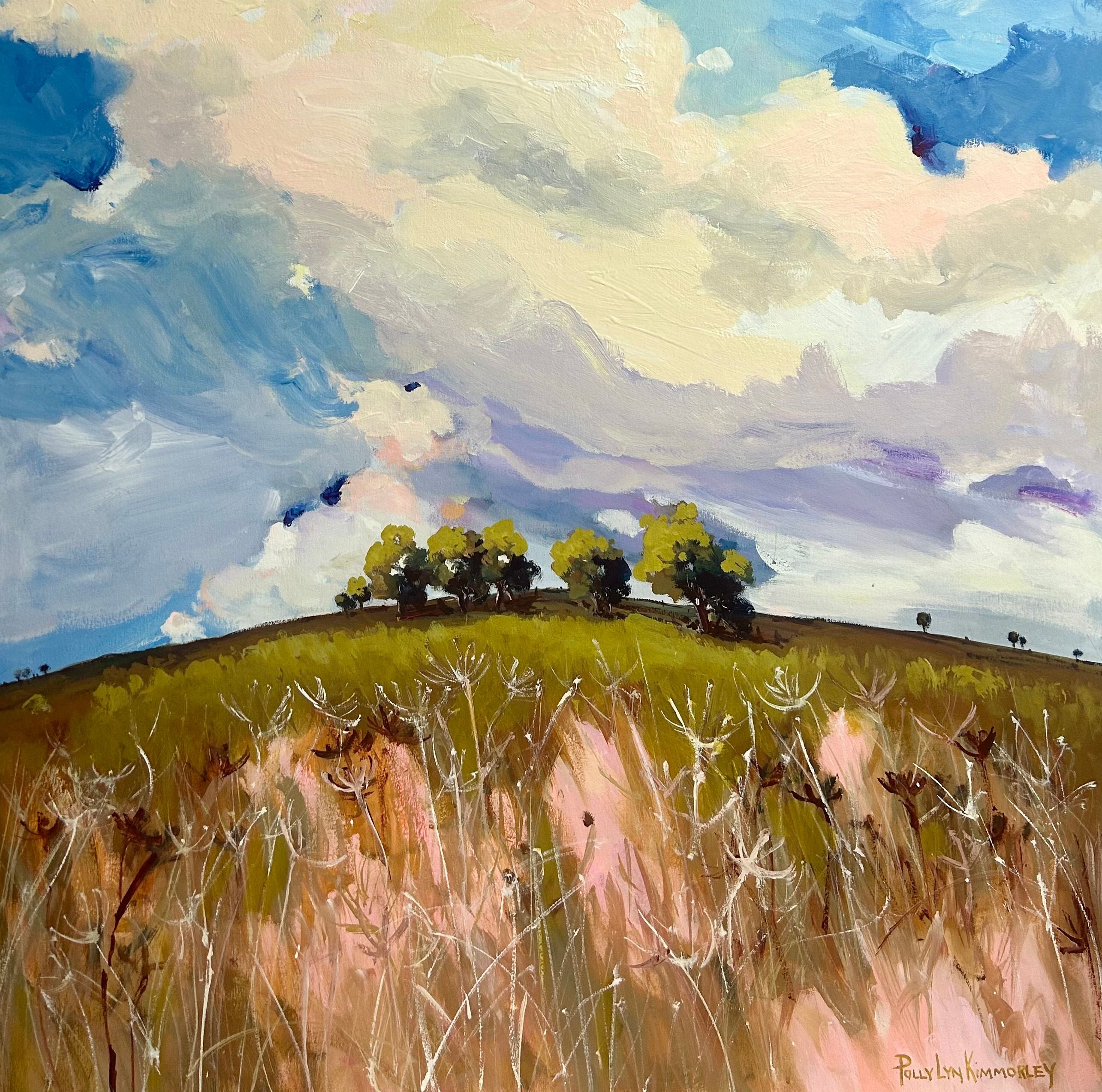 With the use of a colourful palette, Polly paints the country landscape with layers of transparent strokes and movement, reflecting her connection to the Australian countryside.